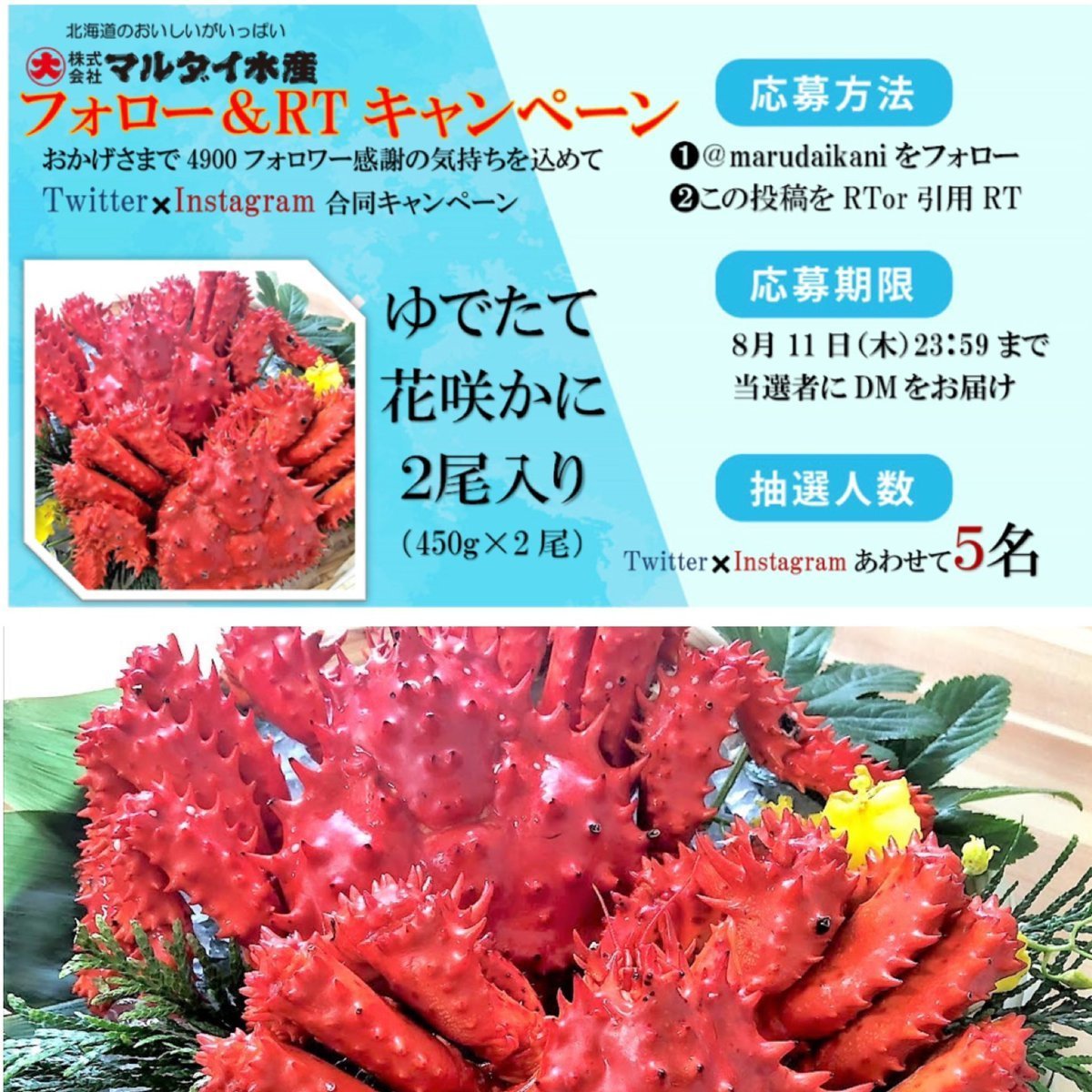 茹でたて #花咲かに を5名様にお届け『応募方法』
