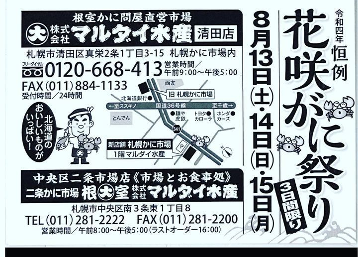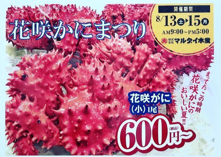 おはようございます🦀3日間限定🦀8月13日から15日まで