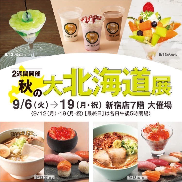 いよいよ明日から、開催される秋の大北海道展 9月6日から19日まで なお、12日までの期間限定出店