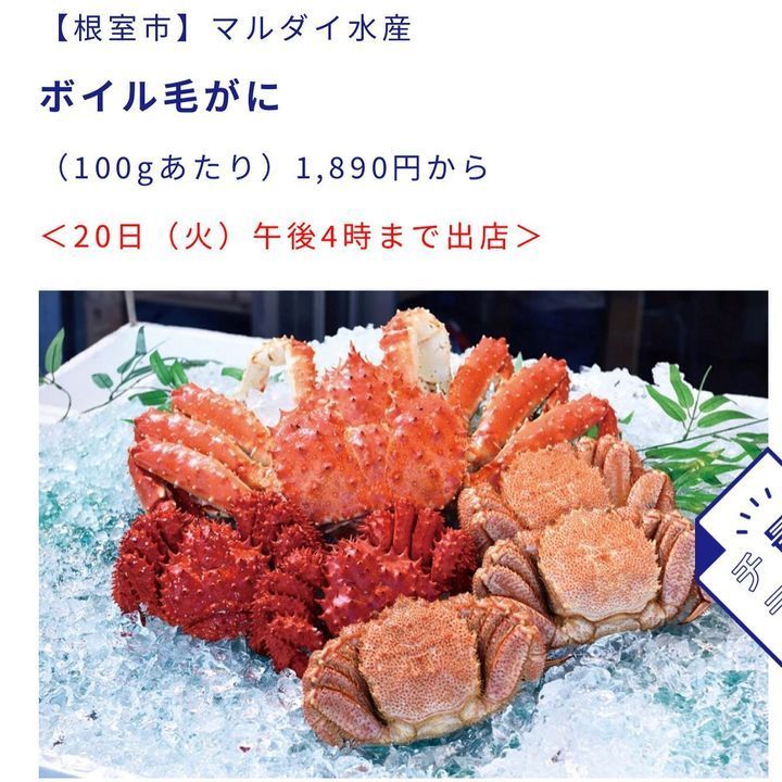 今は、宇都宮東武百貨店と玉川高島屋で秋の北海道展開催中です🦀