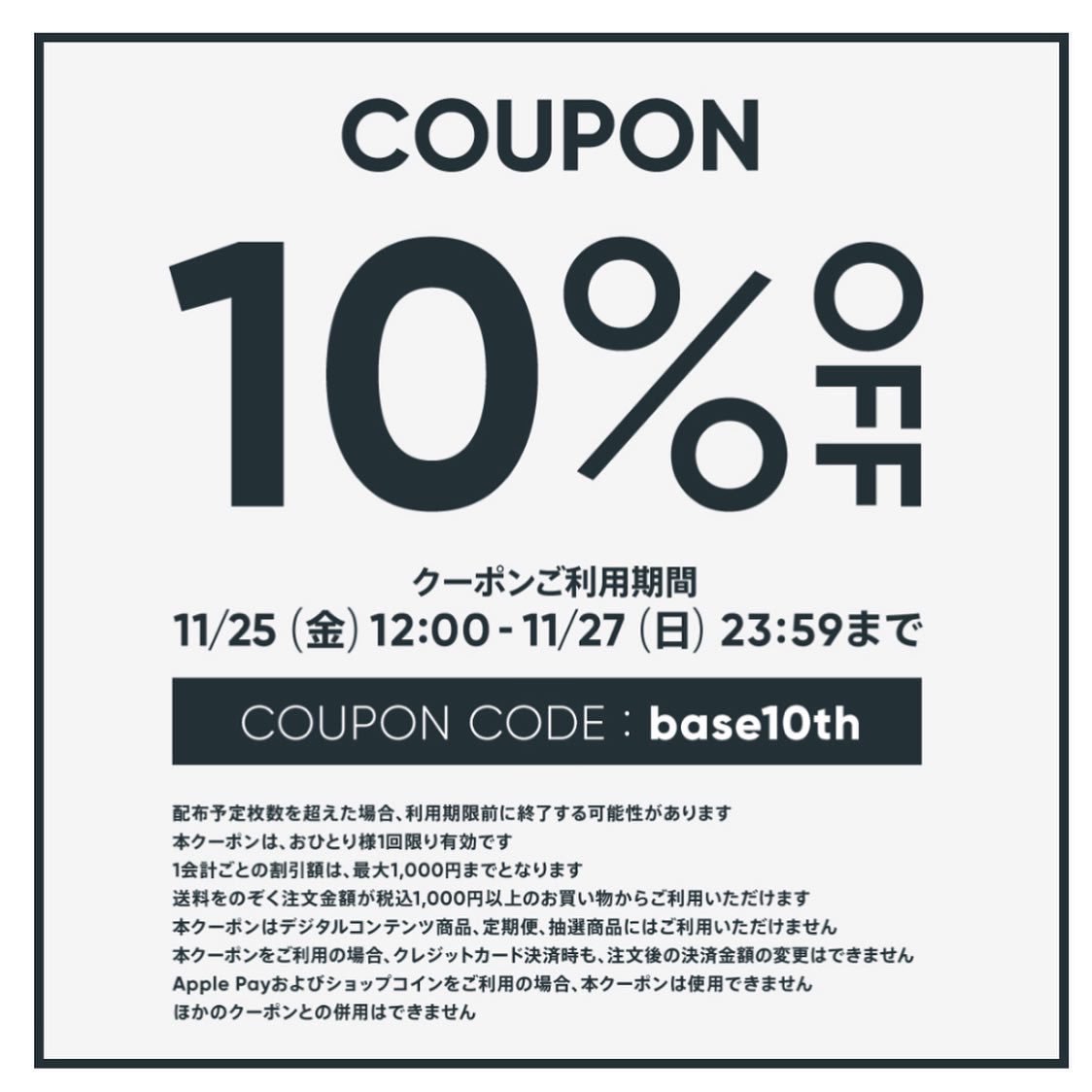 10%OFF クーポンがご利用頂けます。是非このチャンスをお見逃しなく👀