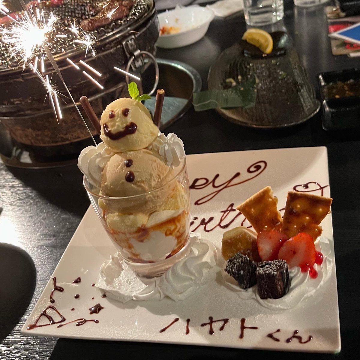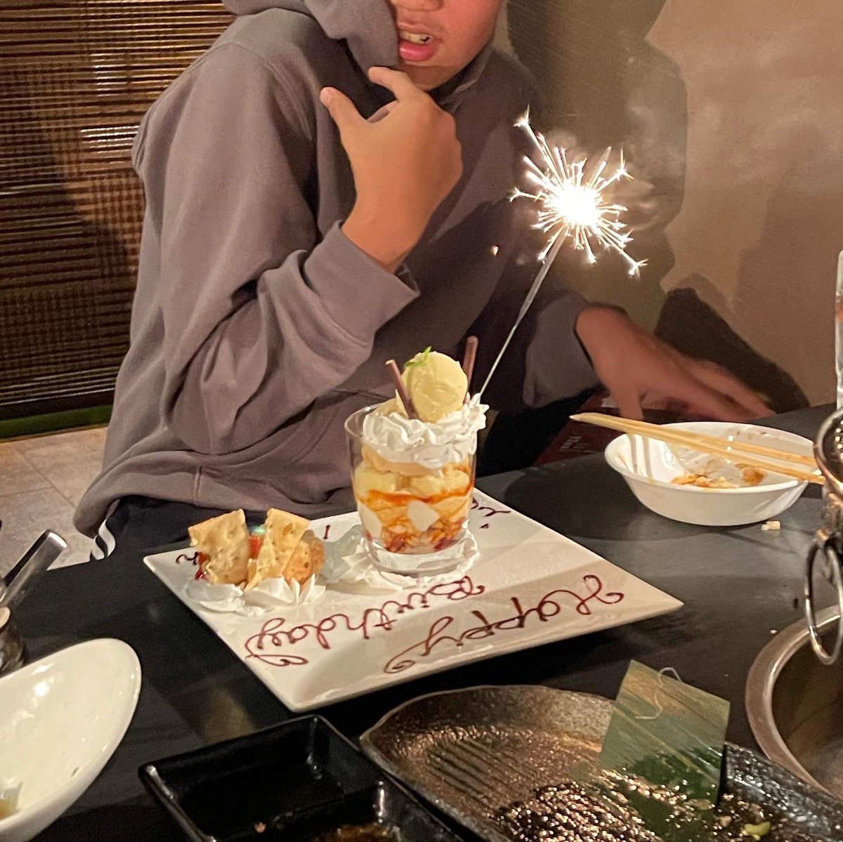 カニ屋の息子ですが、ナマモノ苦手の為焼き肉でお祝い🎂お店からの花火プレートに驚いてました🫣