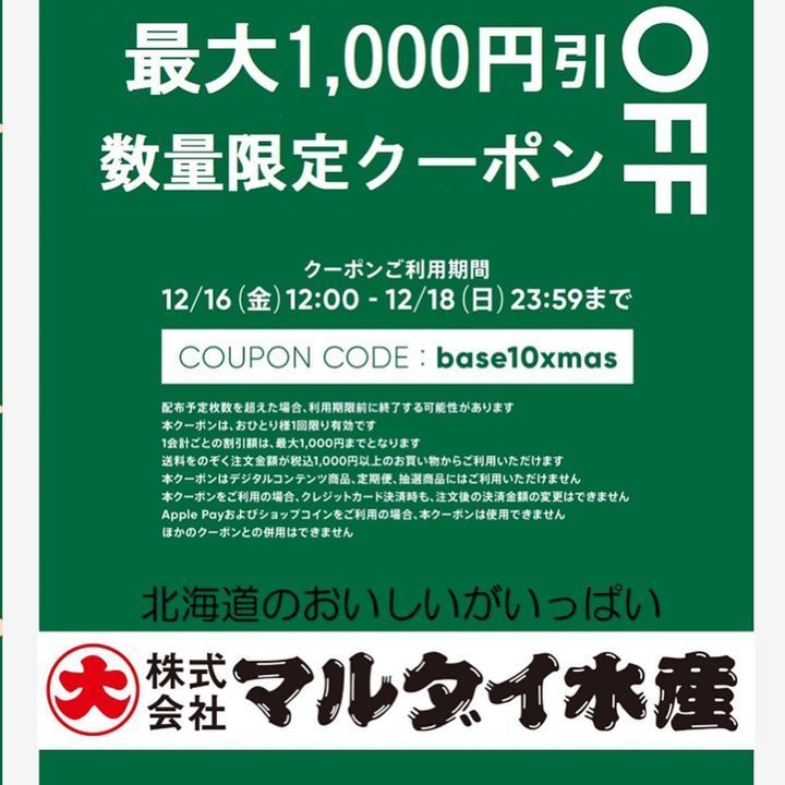 商品購入画面でクーポンコード「base10xmas」を入力してください。