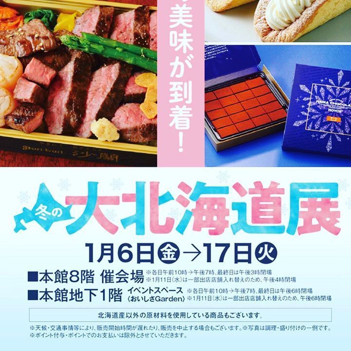 本日より第2弾冬の大北海道展 浜松市遠鉄百貨店本館8階においしいかにがいっぱいです。ぜひお近くの方は、北海道物産展会場にご来店お待ちしております。マルダイ水産にてお買い上げのお客様でSNS見たよって言うと豪華な粗品進呈させて戴きますので、よろしくお願い致します。