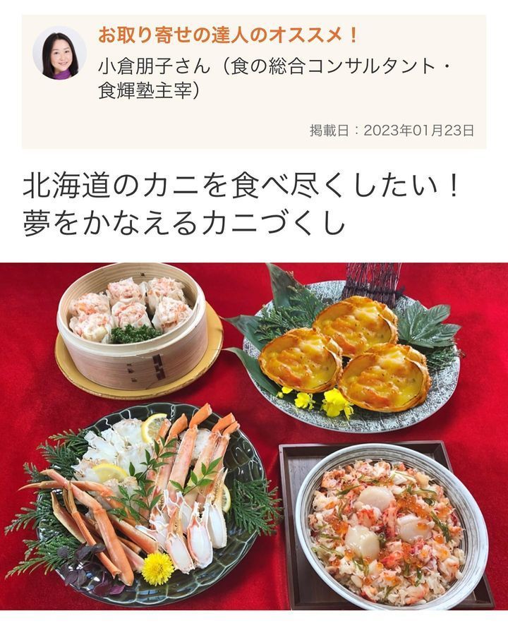 日本最大級のお取り寄せ情報サイト おとりよせネット 達人小倉朋子さんのおすすめになんと、マルダイ水産特選 かに尽くしが紹介されました♪ありがとうございます😭北海道のカニを食べ尽くしたい!夢をかなえるカニづくし🦀