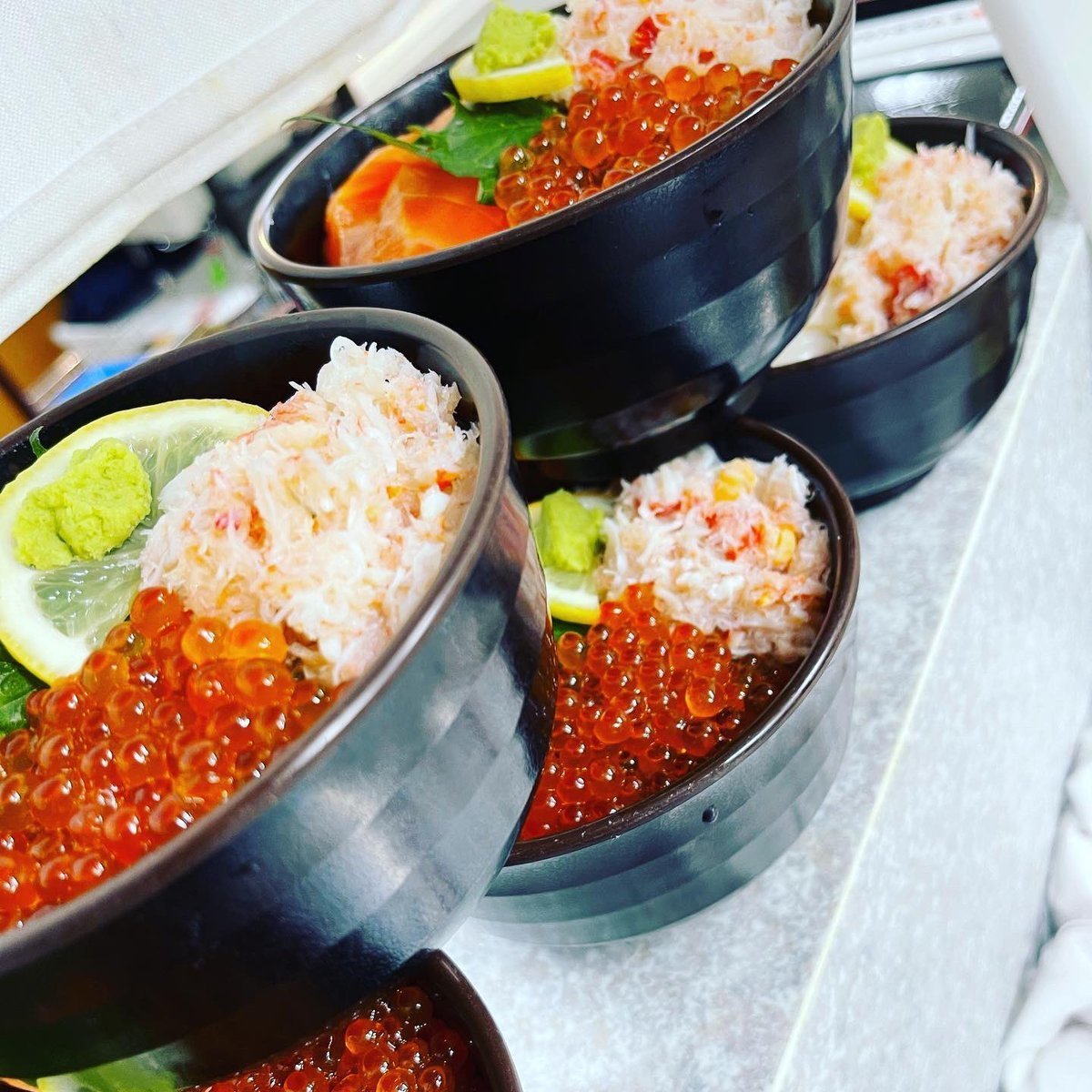 人気のお好み三色丼が海鮮丼タワーになってます♪店長ドンどん丼作っております。